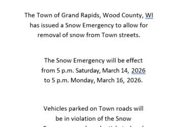 The Town of Grand Rapids, Wood County, WI has issued a Snow Emergency to allow…