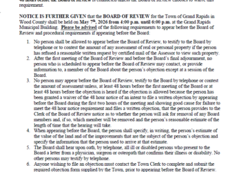 NOTICE OF THE BOARD OF REVIEW AND OPEN BOOK FOR THE TOWN OF GRAND RAPIDS,…